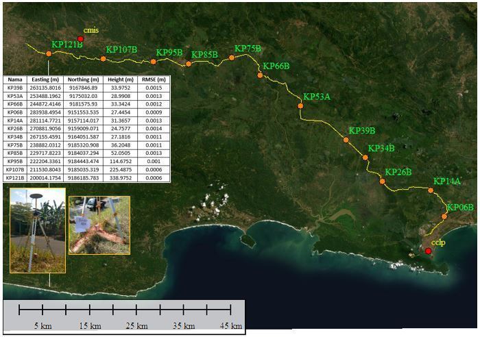 Geomasi dipercaya oleh KSO PT Hutama Karya – PT Timas Suplindo untuk mengerjakan survei GNSS untuk pengukuran BM sebagai titik referensi pemetaan topografi pada pekerjaan pengembangan jalur pipa CB-III Lomanis-Tasikmalaya sepanjang 126 km milik PT Pertamina.