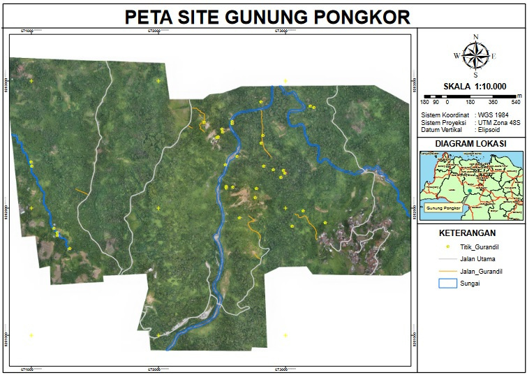 Lokasi tambang emas Pongkor berada di kawasan Taman Nasional Gunung Halimun-Salak, Kabupaten Bogor, Jawa Barat. Area pertambangan ini dikelola oleh PT Antam Tbk. Pada proyek kali ini, pemetaan foto udara pada area pertambangan dilakukan untuk mendeteksi lokasi-lokasi yang kemungkinan menjadi tempat pertambangan ilegal.