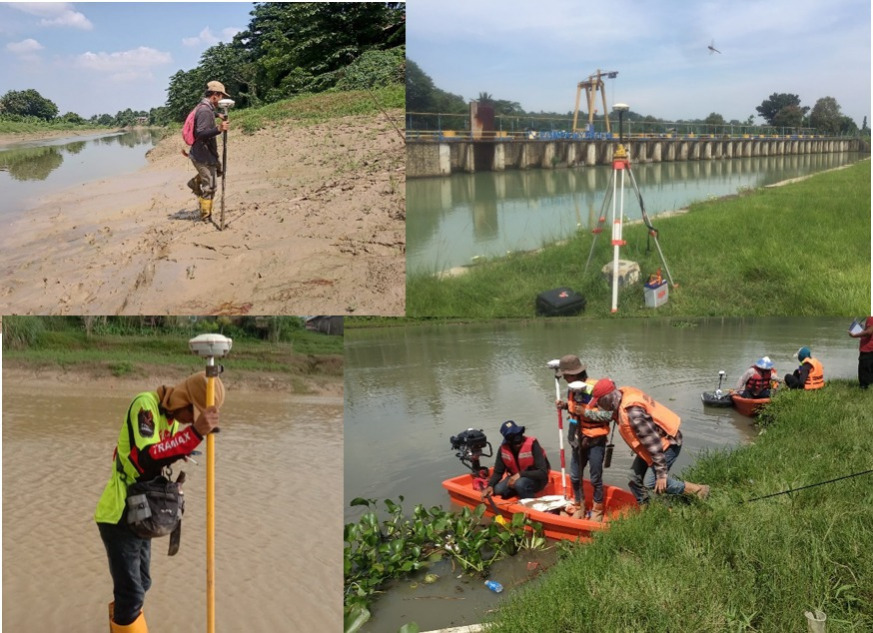 Metode pekerjaan ini menggunakan pengukuran ekstra-terestris GNSS dengan metode RTK untuk bagian daratnya, serta menggunakan metode pemeruman untuk bagian airnya. Produk yang dihasilkan dari pekerjaan ini adalah berupa gambaran melintang Sungai Citarum hilir yang dapat digunakan untuk pemodelan.