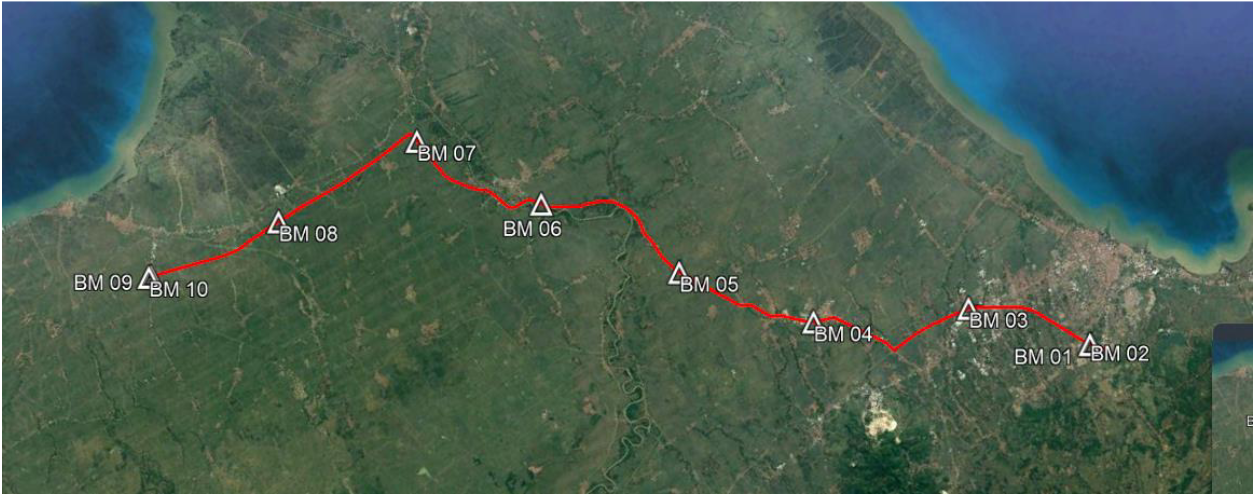 Pertama, survei pendahuluan perlu dilakukan untuk mendapatkan gambaran kawasan secara umum, detail yang harus dipetakan, batasan area, dan informasi lain seperti gambar-gambar terdahulu untuk dapat perencanaan pelaksanaan survei pemetaan. Pekerjaan ini terbagi menjadi 2 tahapan utama, yaitu pembuatan dan pengukuran titik referensi selama 2 hari dan pengukuran topografi jalan serta pengukuran beda tinggi menggunakan waterpass.
