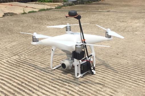 DJI Phantom 4 Pro yang digunakan dikombinasikan dengan receiver GNSS EMLID Reach M+ sebagai sistem penentuan posisi foto pada drone atau bertindak sebagai rover. Pemetaan photogrammetry dengan metode ini akan memberikan koordinat titik tengah foto yang sudah terikat dengan titik Benchmark (BM) yang telah diukur menggunakan receiver GNSS (base), dengan kata lain sistem penentuan posisi foto dilakukan secara differential post processing. Data yang direkam merupakan single frequency setiap 0.5 detik (2Hz) dengan sensor perekam triger kamera sehingga data GNSS yang terekam sinkron dengan data foto yang diambil.